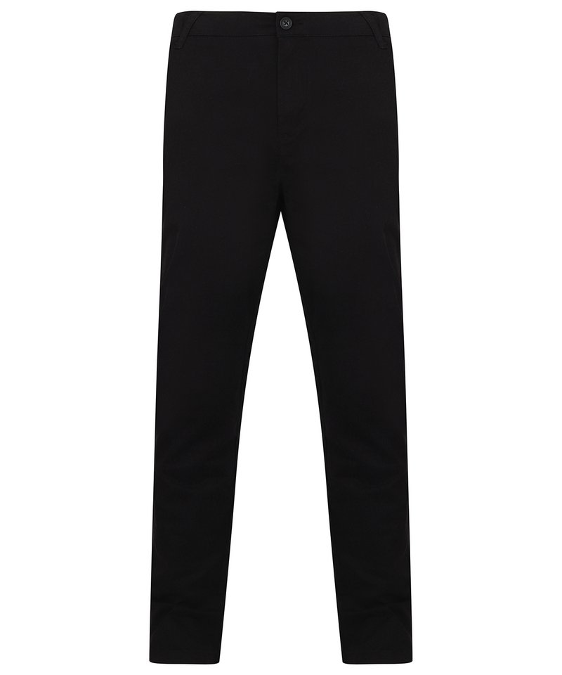 Men’s slim fitting chino with stretch and new Flex waistband for additional comfort. Includes YKK front zipper, belt loops, slanted side pockets, two single jet back pockets, back darts for added fit and DTM buttons. This cotton stretch slim fitting chino is the perfect contemporary style suitable for all industries. With the Flex waistband feature this style will provide extra comfort and flexibility for all wearers. Stretch twill fabric. Slim fit Flex waistband for added comfort 2 button-through back pockets Wash at 40 degrees. Wash dark colours separately. Use colour recommended detergent. Wash and dry inside out. Do not bleach. Do not tumble dry. Dry out of direct heat and sunlight. Iron on reverse.
